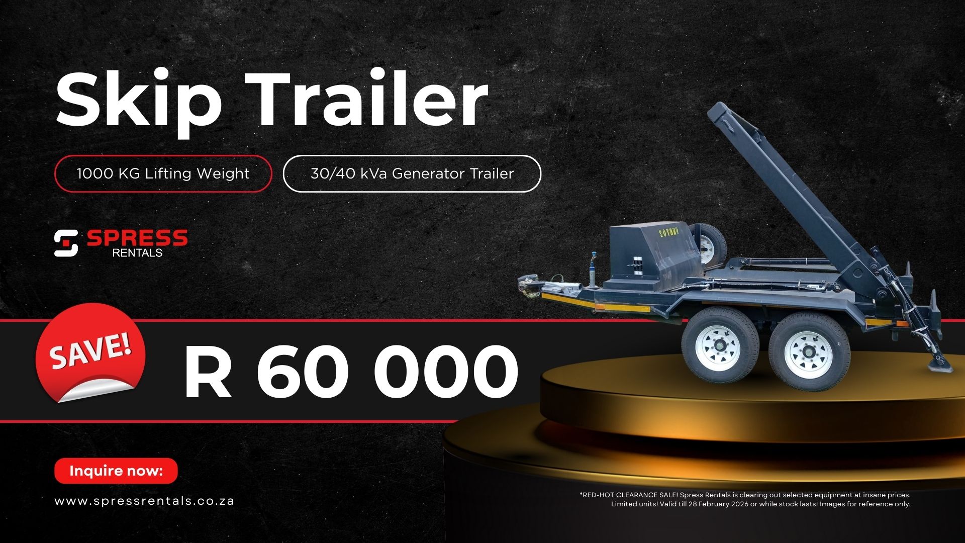 Request a Quote Red Hot Clearance Sale – Purchase Now! Name & Surname Contact Number Email Address Select SelectDWW 185DVAH 185 (525 V)DACY -15.5/13DG 30KVADG 40KVADG 60KVADG 150KVADG 250KVADG 400KVABreathing Air TrailerSkip Trailer Message I Confirm That I Have Read & Agree To The Terms & Conditions & Privacy Policy. I Confirm That I Have Read & Give Consent To Receive Marketing & Sales Communications. Request a Quote Now